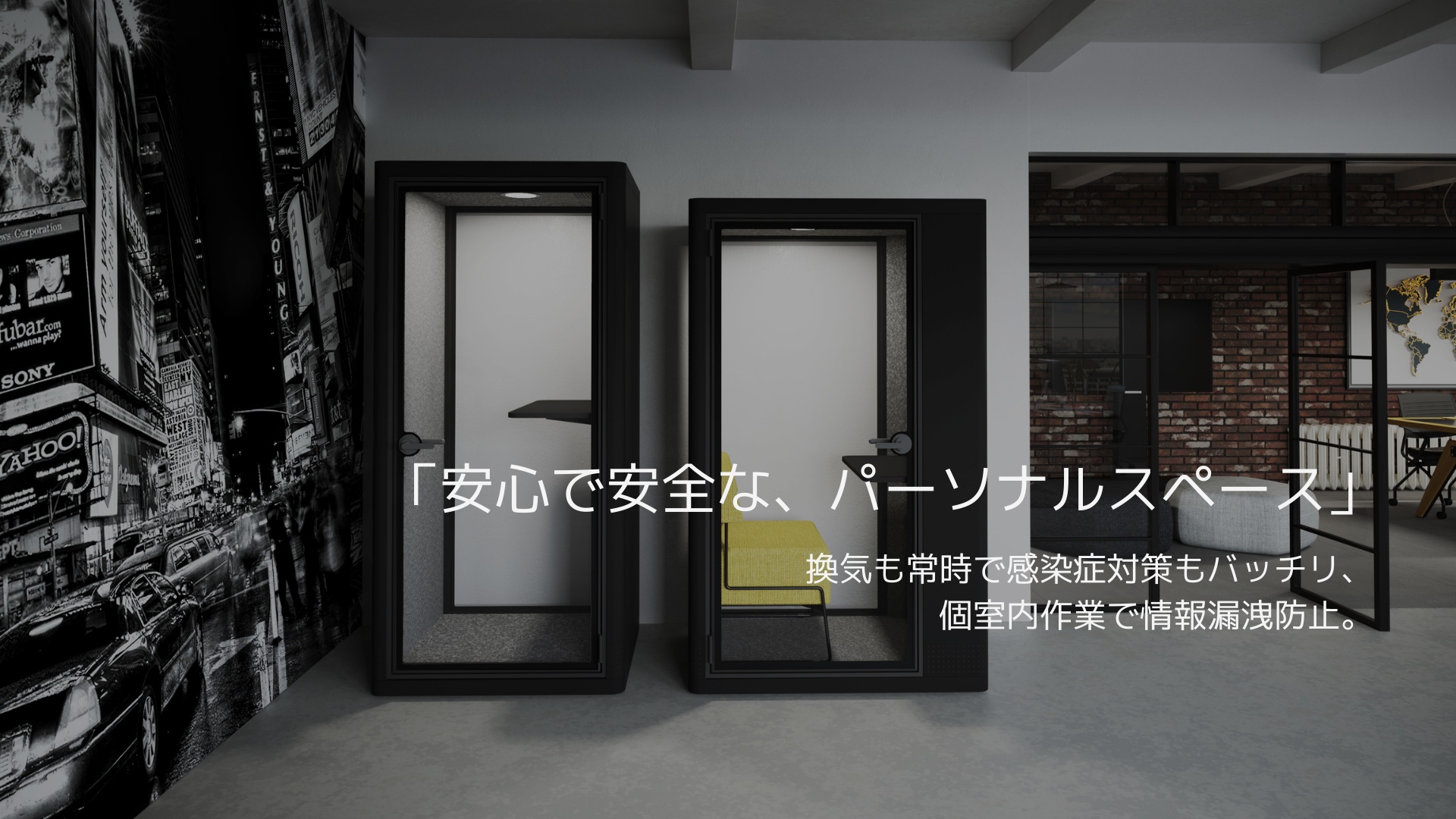ワークスタイルに合わせて選べる個室型ワークスペースを、無料で体験可能です。